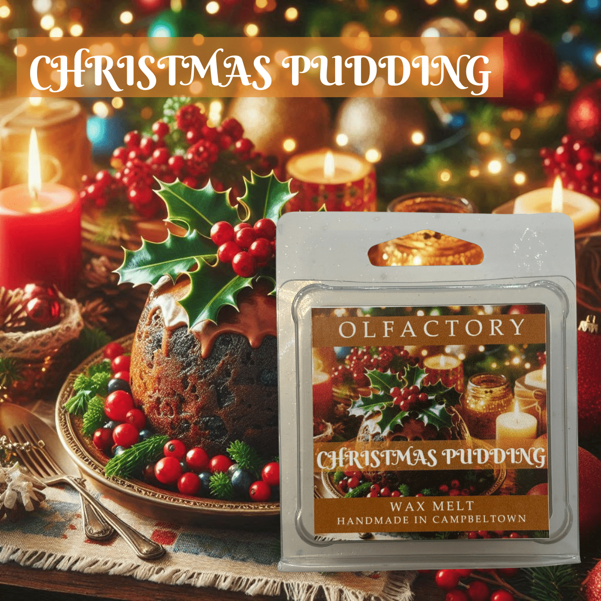 A rich and indulgent Christmas classic. This comforting scent blends warm festive spices with sweet dried fruits and a touch of sugary decadence. Hints of juicy raisins, zesty orange peel, cinnamon, nutmeg, and brown sugar melt together to recreate the aroma of a freshly steamed Christmas pudding. Cosy, nostalgic, and irresistibly gourmand, the perfect fragrance for filling your home with holiday warmth.