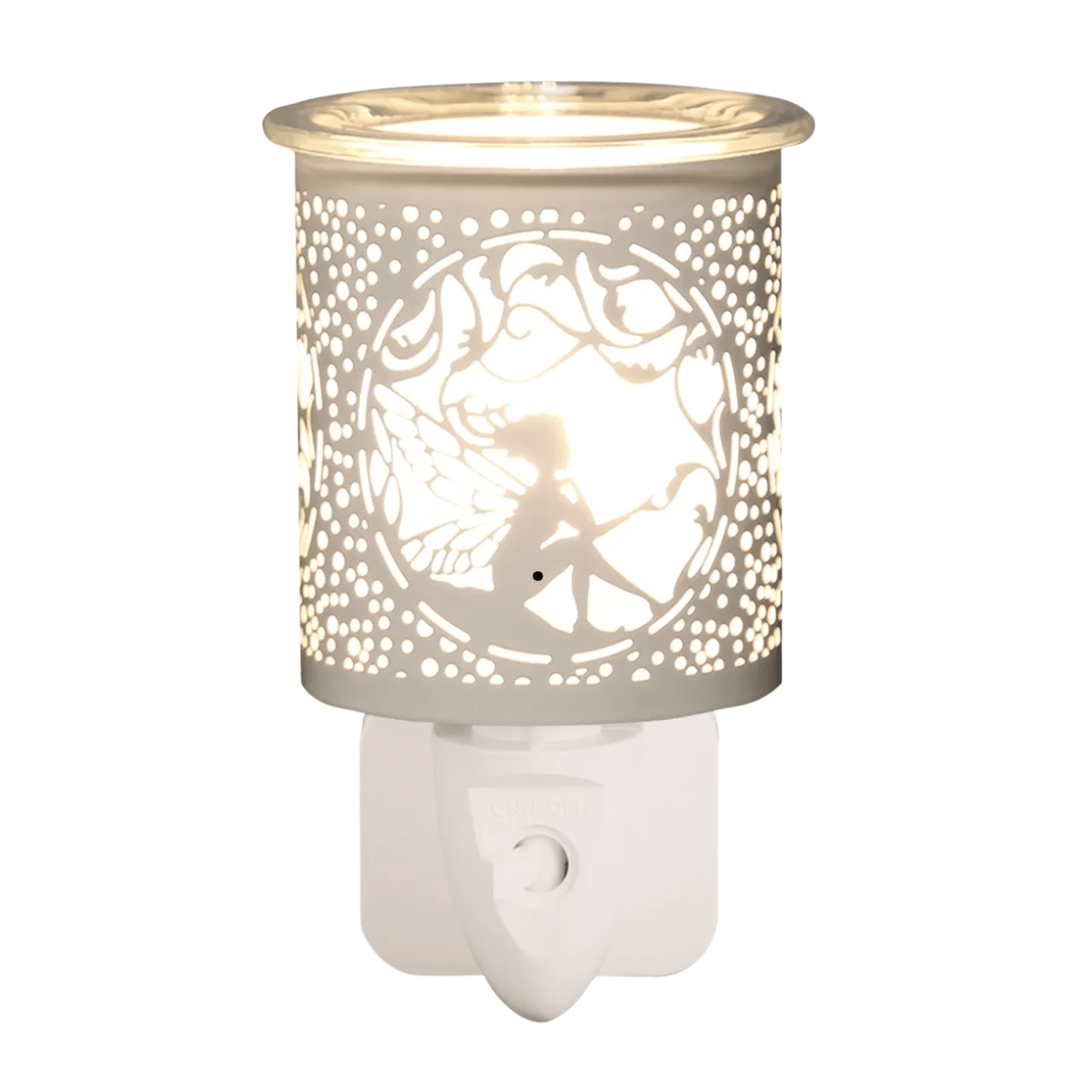 A beautiful fairy design silhouette plug in which will create a shimmery glow.